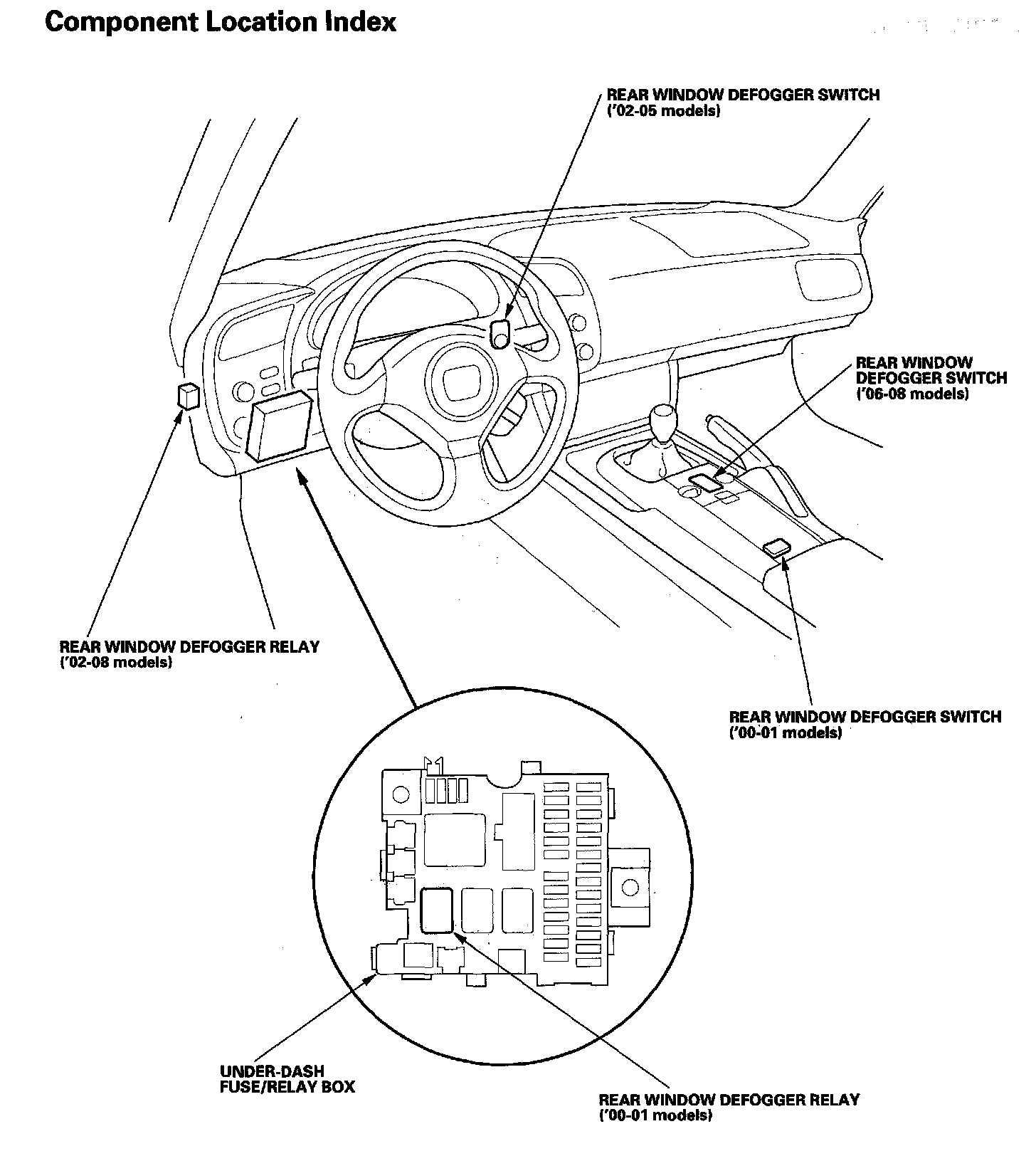 Rear Window Defogger Component Location Index: