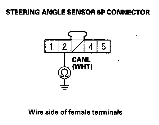 15. Check for continuity between steering angle sensor 5P connector terminal No. 2 and body ground.