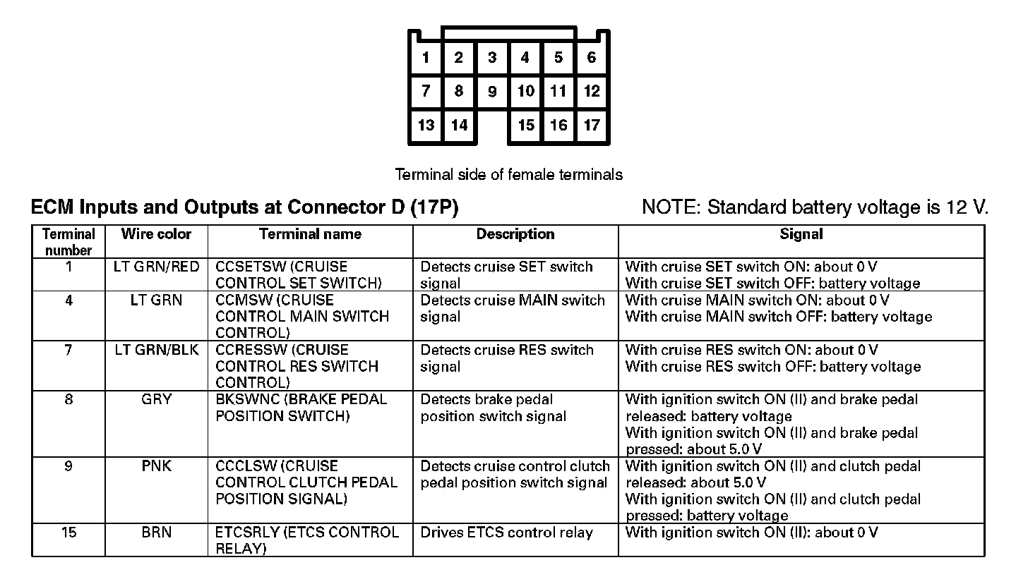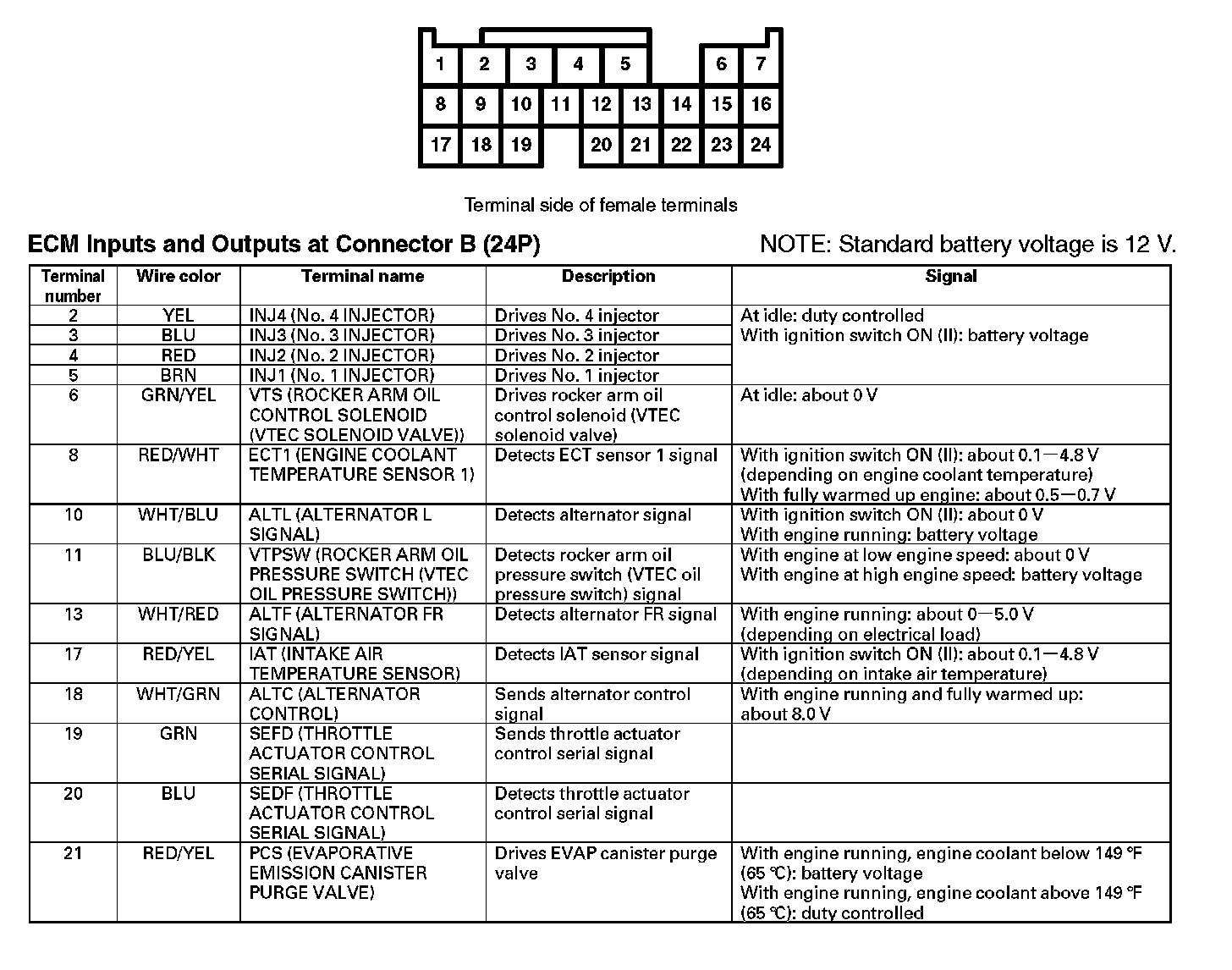 ECM Inputs And Outputs At Connector A (31P) Part 1: