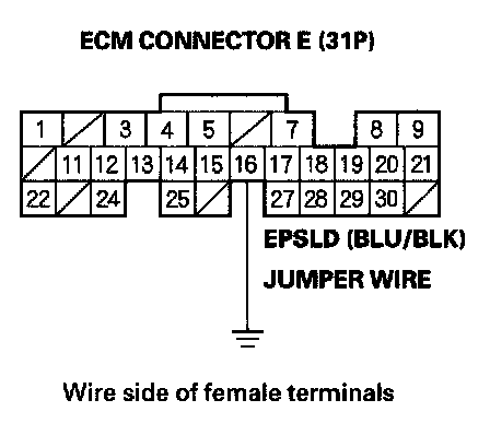 10. Connect ECM connector terminal E16 to body ground with a jumper wire.