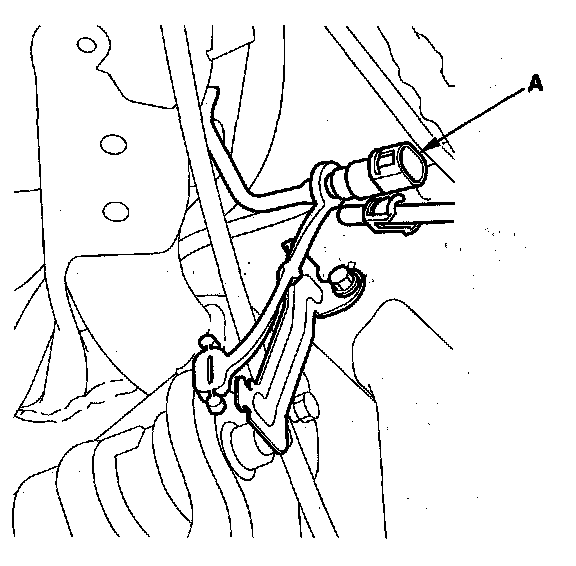 8. Disconnect both ABS rear wheel speed sensors 2P connectors (A), and push the connectors out.