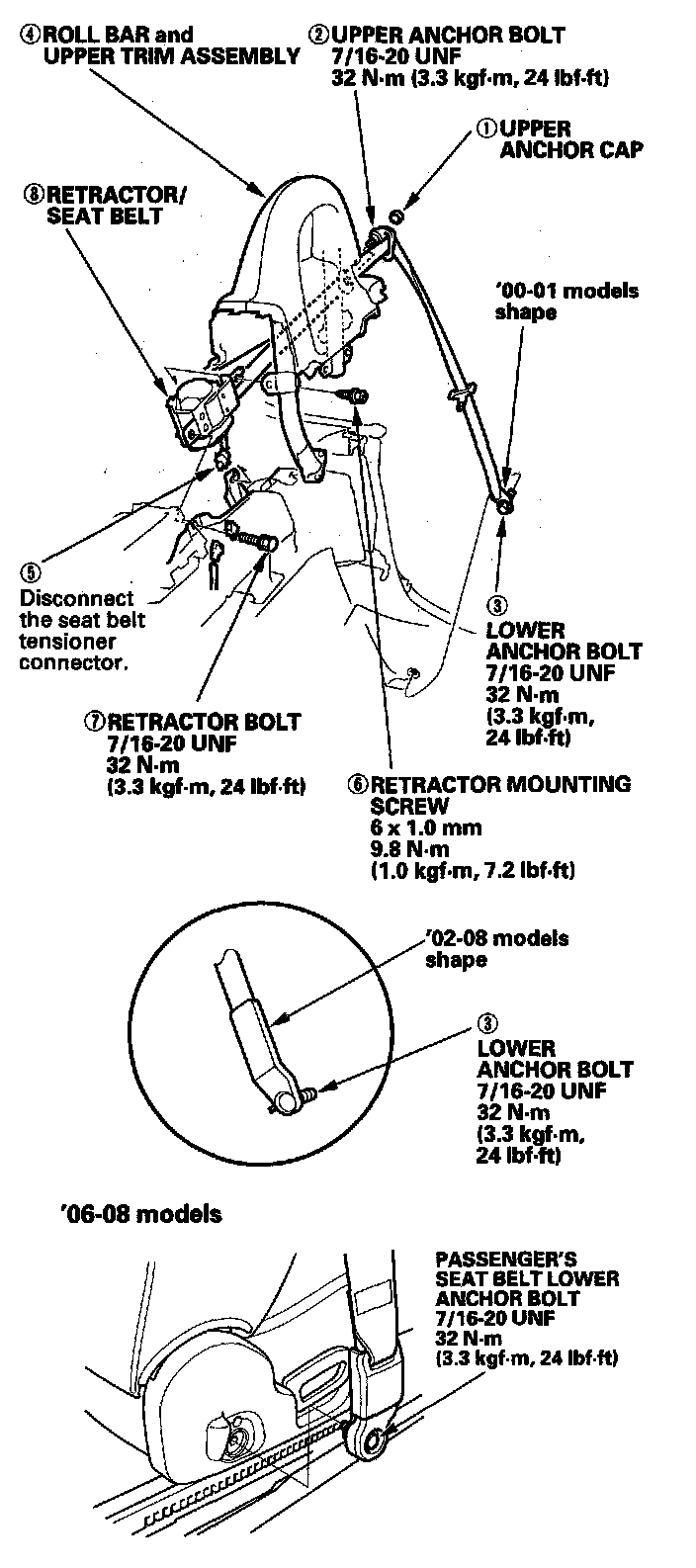 NOTE: Check the seat belts for damage, and replace them if necessary.