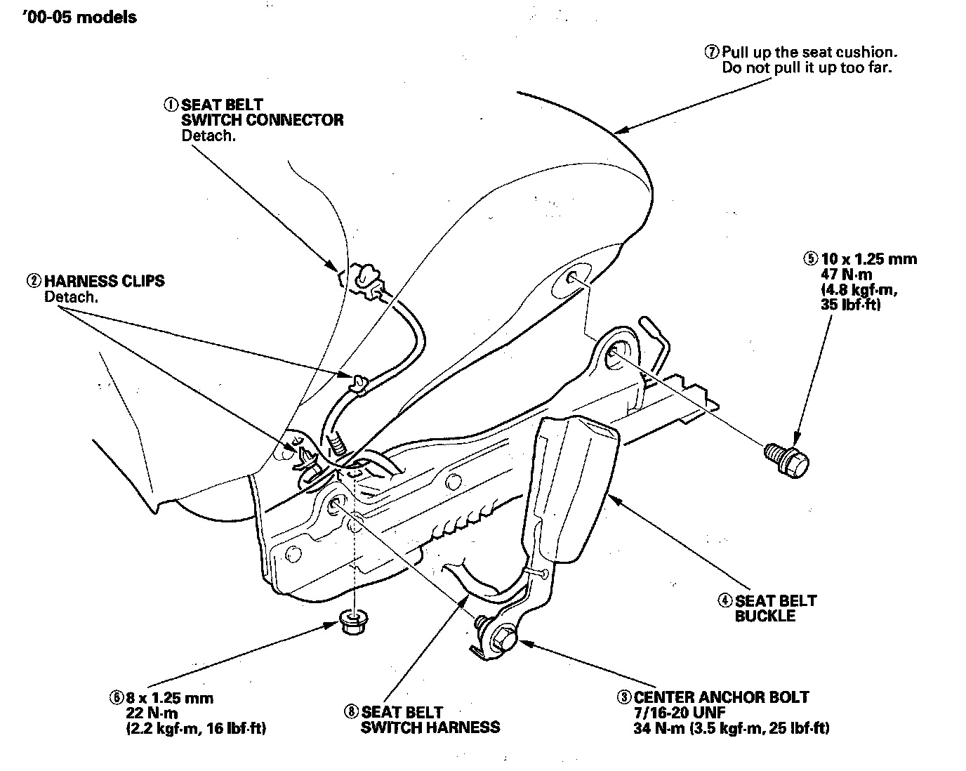NOTE: To get to the seat belt switch connector, lift the seat cushion away from the inner seat track.