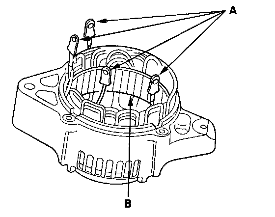 23. Check for continuity between each lead and the coil core (B).