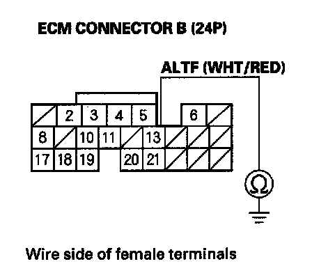 16. Check for continuity between body ground and ECM connector terminal B13.