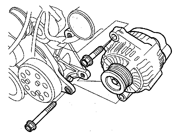 9. Remove the mounting bolts, then remove the alternator.