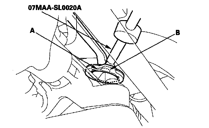 4. Loosen the rack guide screw locknut (A) with the locknut wrench, then loosen the rack guide screw (B).