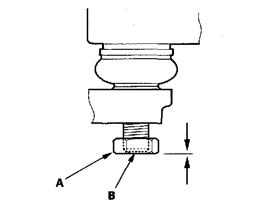 1. Install a hex nut (A) onto the threads of the ball joint (B). Make sure the nut is flush with the ball joint pin end to prevent damage to the threaded end of the ball joint pin.