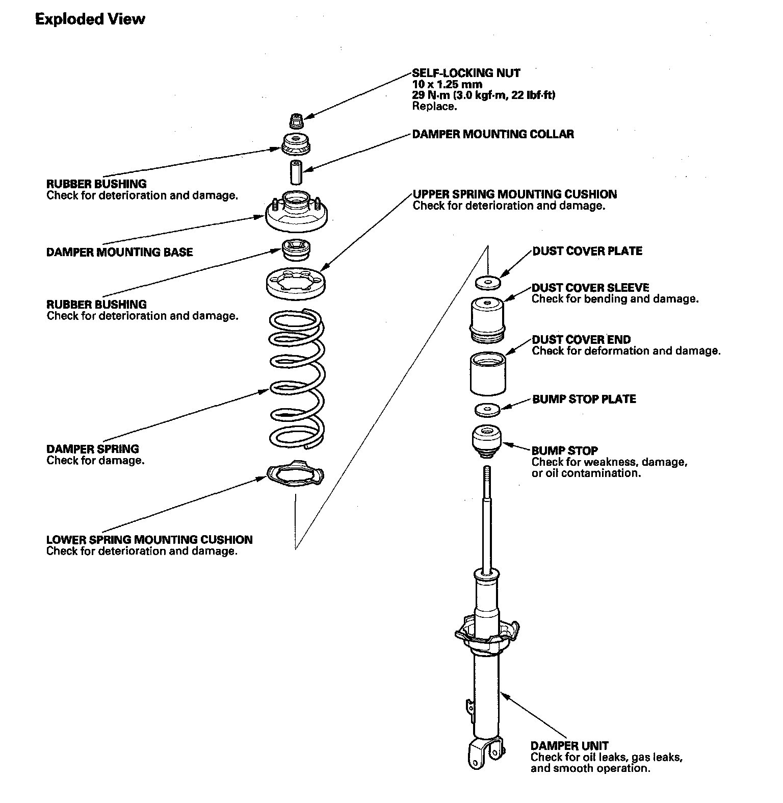 2. Release the pressure from the strut spring compressor, then disassemble the damper as shown in the Exploded View.