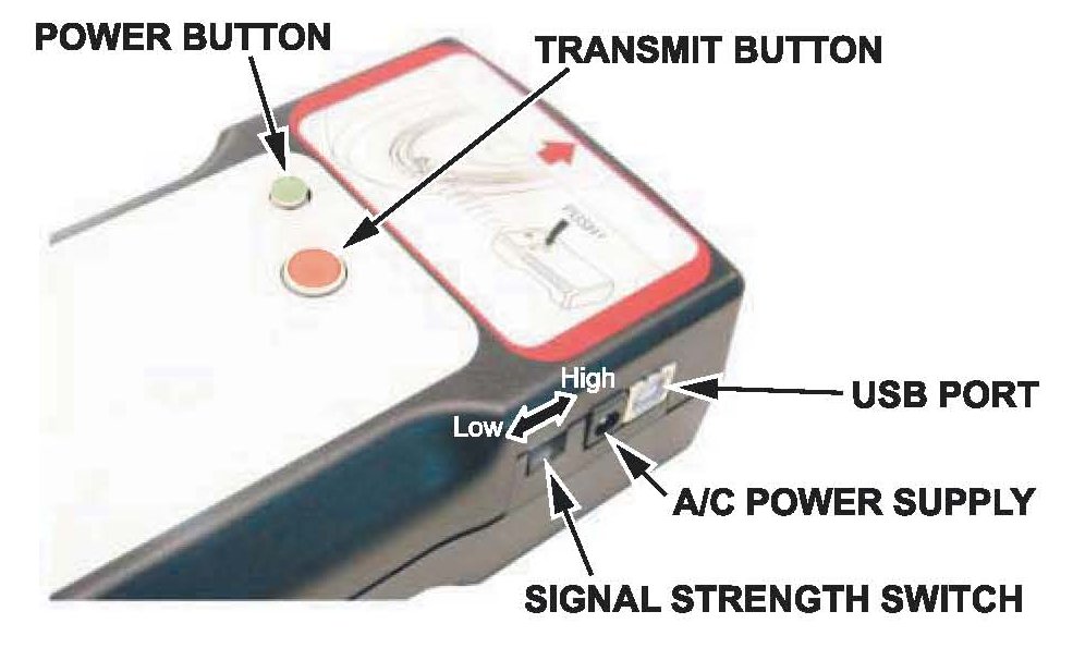 ^ Turn off the TPMS sensor tool by pressing and holding the small button as shown until the green light in the button turns off. The tool will also turn off after 5 minutes of inactivity.