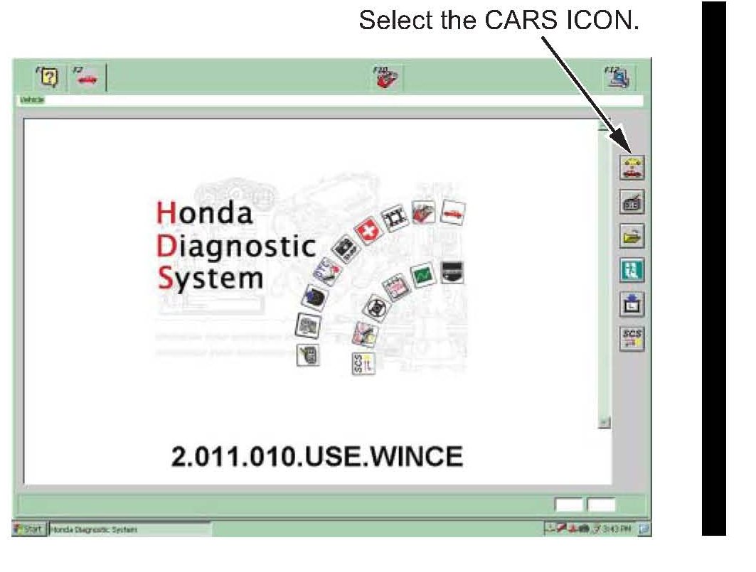4. On the HDS version screen, select the cars icon.