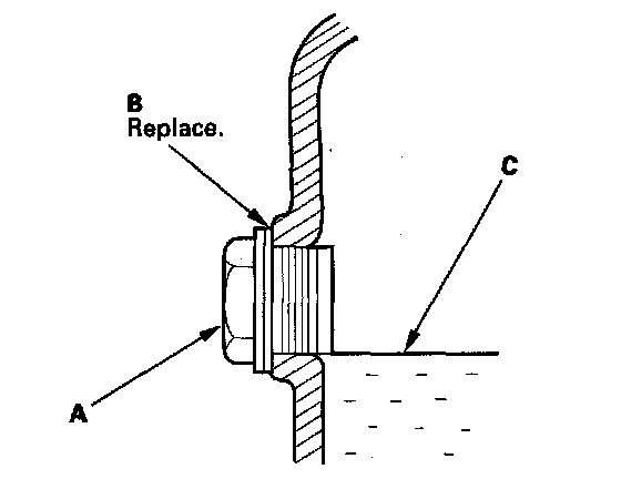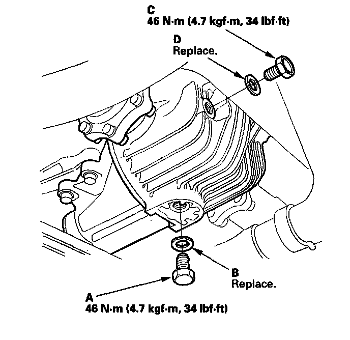 6. Reinstall the filler plug (C) with a new sealing washer (D).