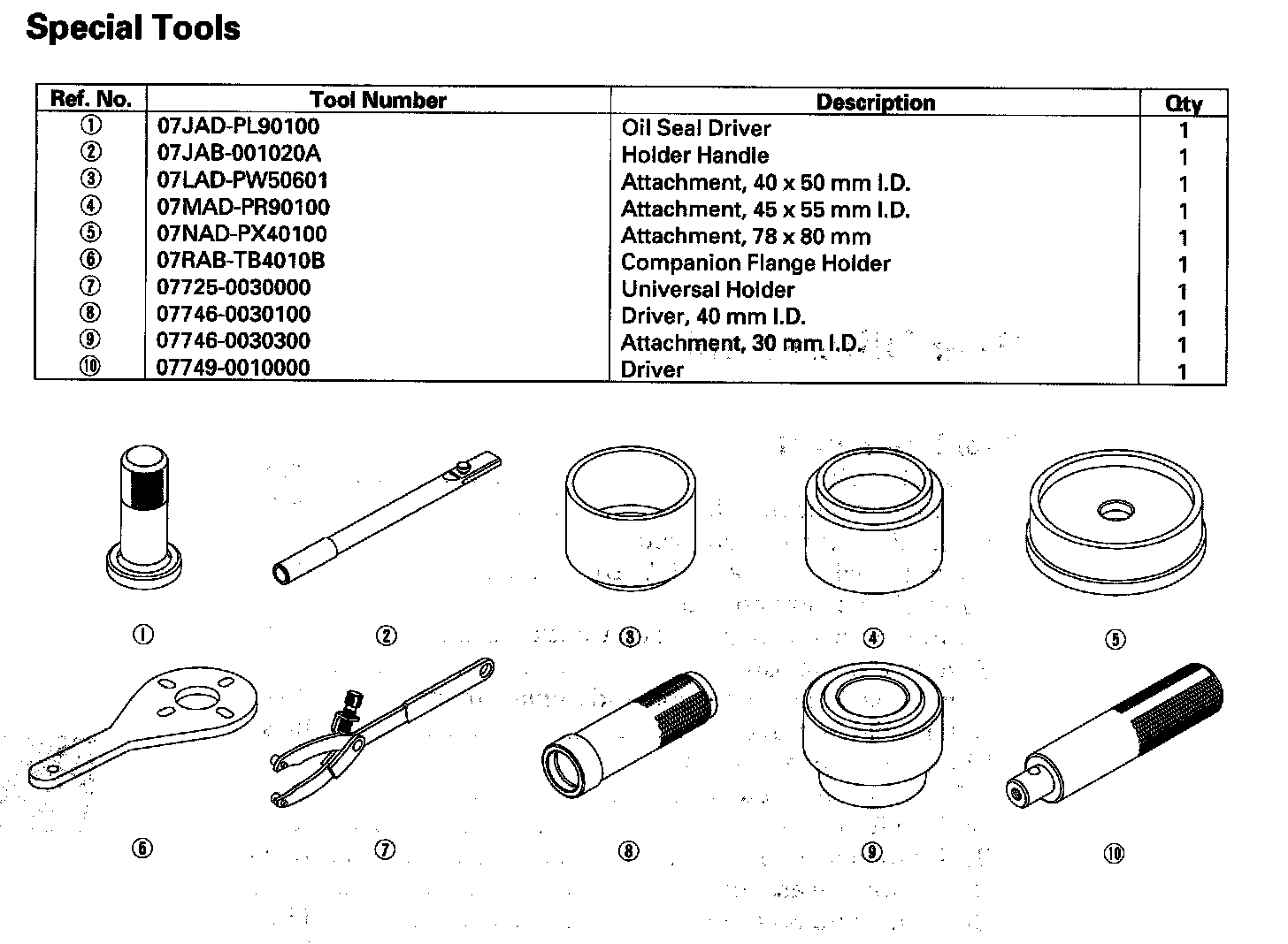 Special Tools: