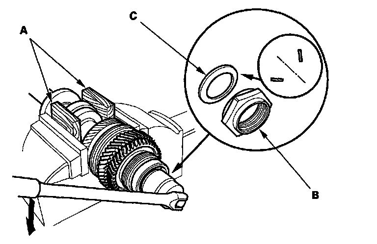 5. Remove the 27 mm locknut (B) and the spring washer (C).