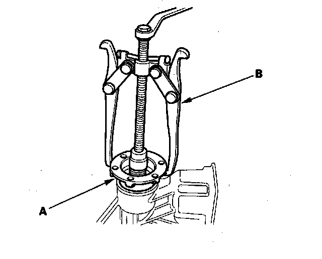 9. Remove the companion flange (A) using commercially available bearing puller (B) as shown.