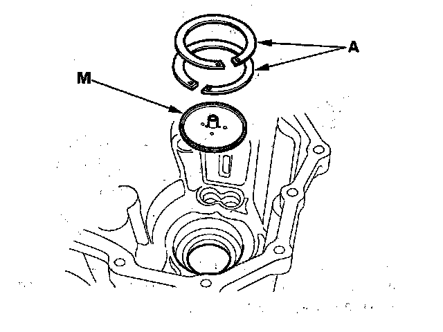 15. Remove the 82 mm shim(s) (A) and oil guide plate M.