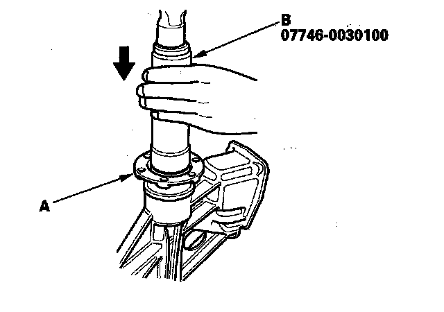 1. Install the oil seal (A) using the 42 x 47 mm attachment (B) and driver (C).