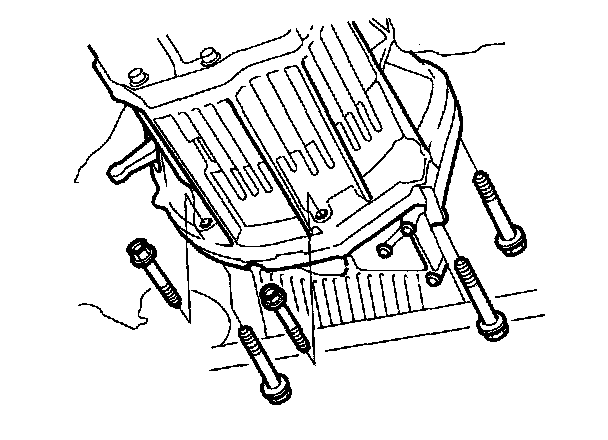 36. Remove the five lower transmission mounting bolts.
