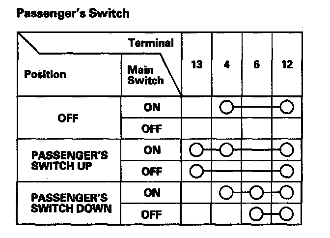3. Check for continuity between the terminals in each switch position according to the table.