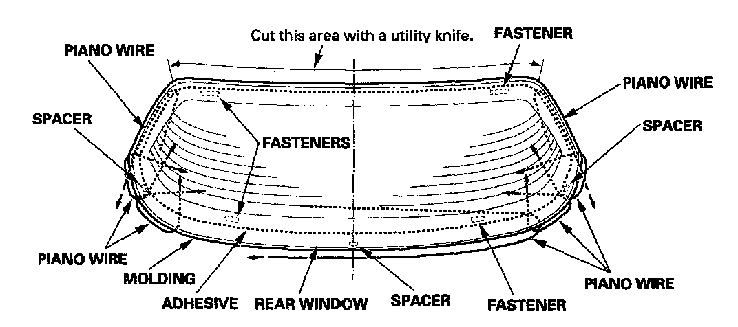 - Remove the rear window and molding as an assembly. If the molding is damaged, replace it.