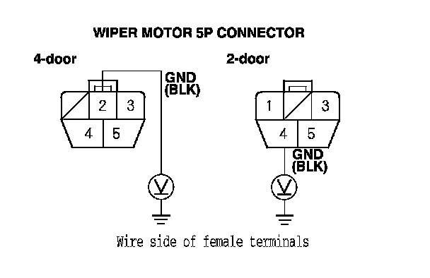 10. Measure the voltage between body ground and the wiper motor 5P connector terminal No. 2 [No. 4].