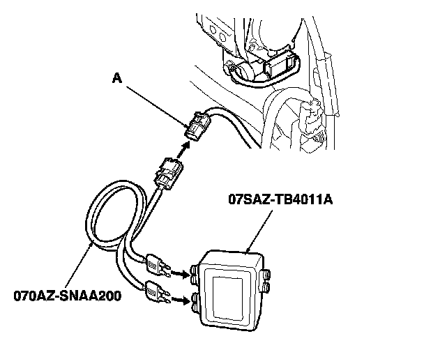 5. Connect the SRS inflator simulator (2 Ohms connectors) and simulator lead K to the SRS floor wire harness.