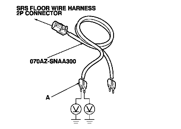 14. Measure the voltage between each terminal of the black SRS simulator lead (A) and body ground. There should be less than 0.2 V.