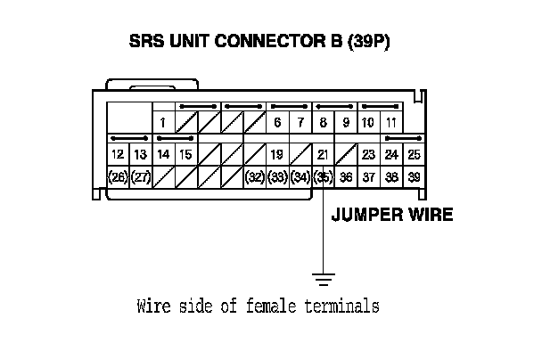 6. Install a jumper wire between the terminal No. 21 of SRS unit connector B (39P) and body ground.