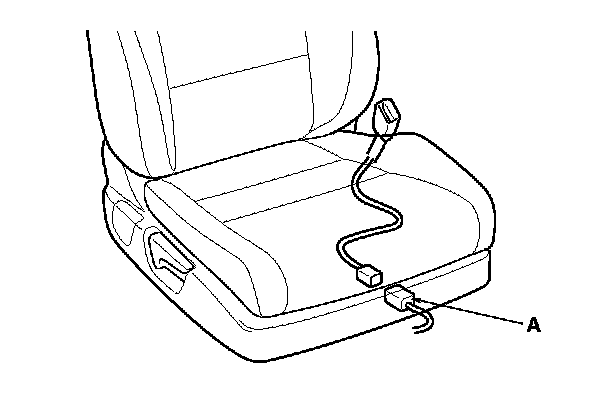10. Disconnect the SRS floor wire harness 2P connector (A) from the front passenger's seat belt buckle switch.