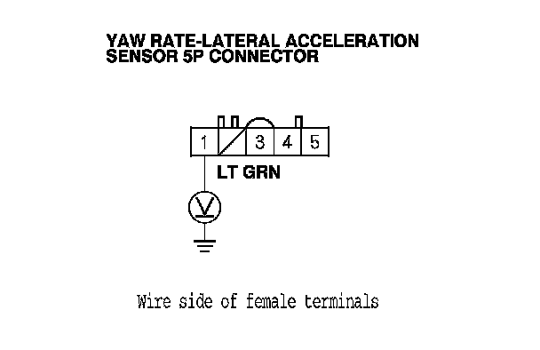 14. Measure the voltage between yaw rate-lateral acceleration sensor 5P connector terminal No. 5 and body ground.
