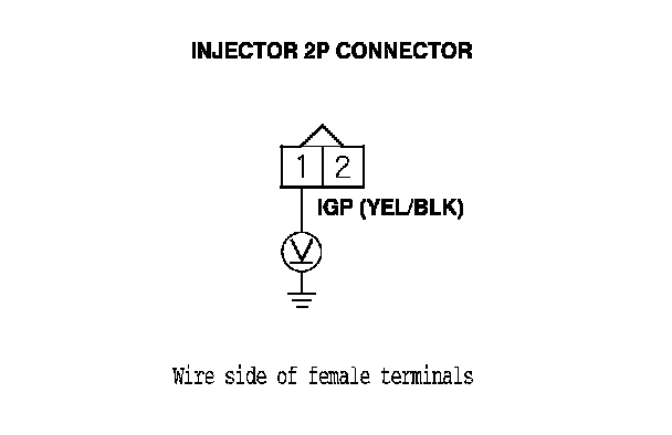 35. Measure the voltage between injector 2P connector terminal No. 1 and body ground.