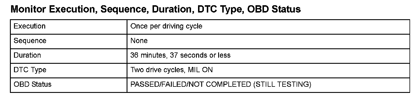 Monitor Execution, Sequence, Duration, DTC Type, OBD Status