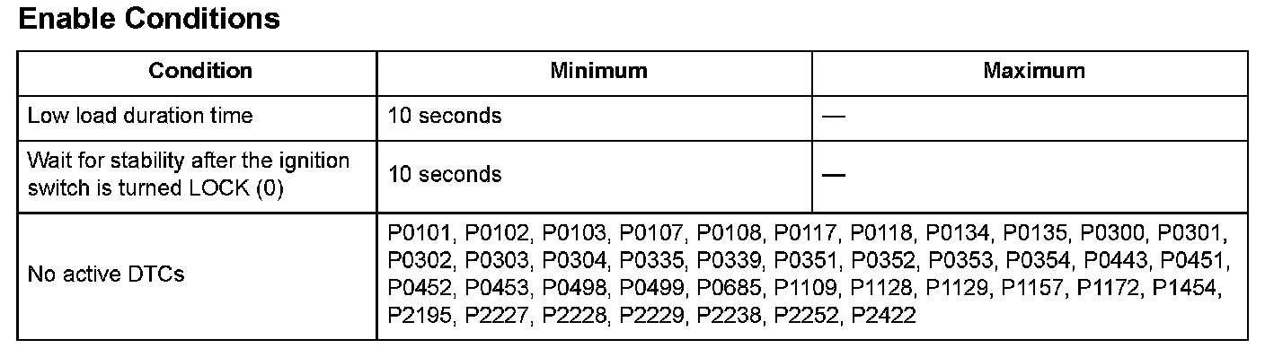 The output from the EVAP canister purge valve is 0.2 kPa (0.07 in.Hg, 2 mmHg) or more for at least 10 seconds.