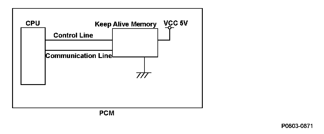 The powertrain control module (PCM) is equipped with a keep-alive memory. The data (control learn data, etc.) for powertrain control and information (vehicle identification number (VIN), etc.) related to vehicle control is stored in the keep alive memory, so that it can be maintained even when power is not supplied to the PCM, such as when the battery is disconnected. When power is restored to the PCM, the CPU retrieves the stored information from the keep-alive memory, but when the data retrieval process is not finished normally, a malfunction is detected and a DTC is stored.