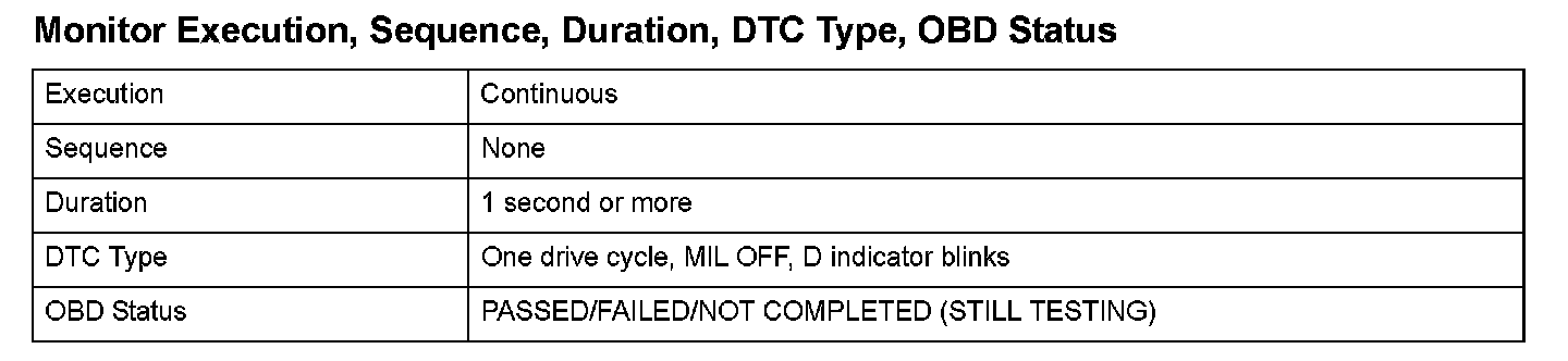 Monitor Execution, Sequence, Duration, DTC Type, OBD Status