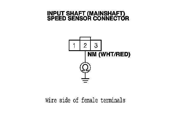 6. Disconnect the input shaft (mainshaft) speed sensor connector, and inspect the connector and connector terminals to be sure they are making good contact.
