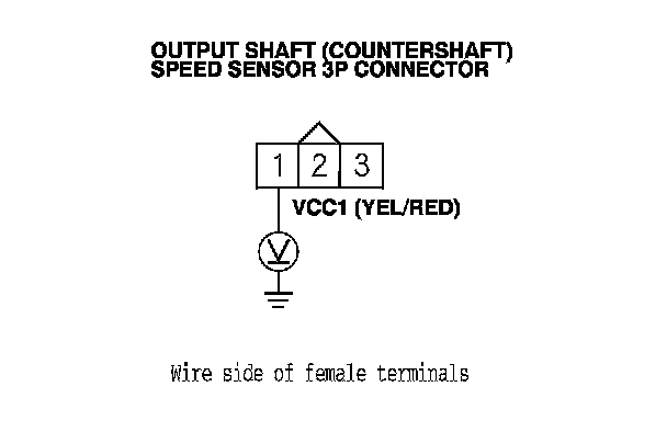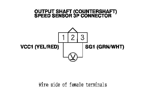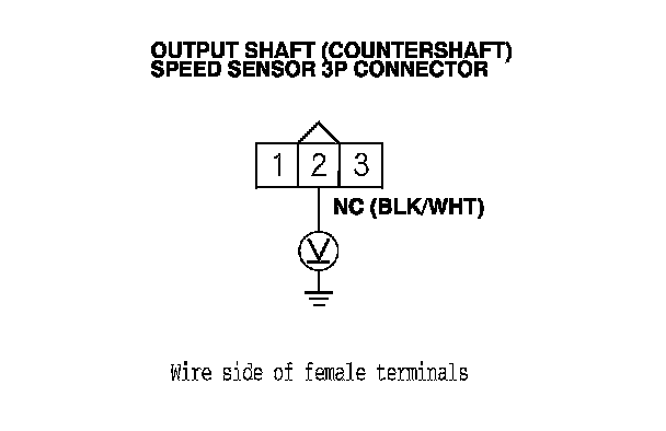 9. Measure the voltage between output shaft (countershaft) speed sensor 3P connector terminals No. 1 and No. 3.