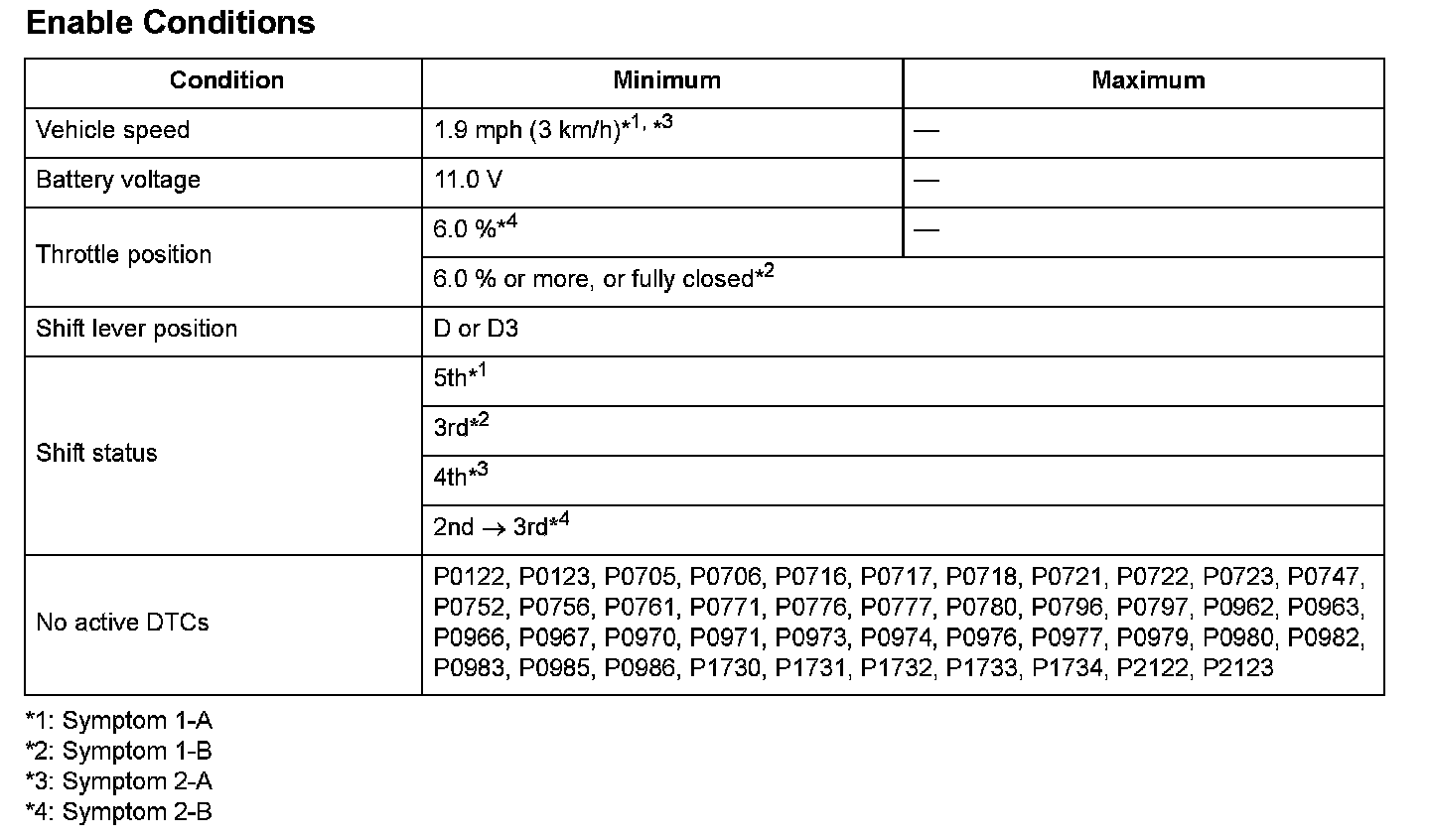 - Symptom 1 occurs during the 1st drive cycle, and symptom 2 occurs during the 2nd drive cycle.