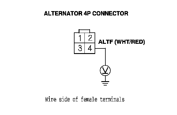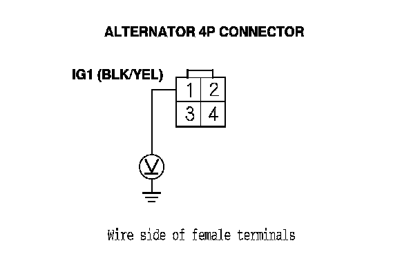 1. Check for poor connections or loose terminals at the alternator 4P connector.
