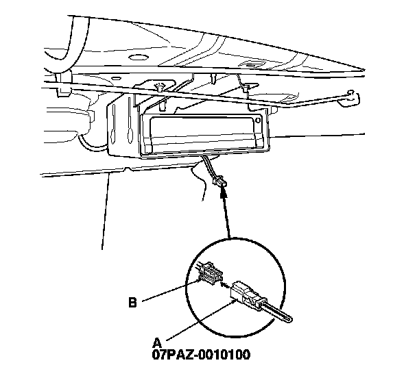 2. Connect the SCS service connector (A) to the navigation service connector (B) located behind the navigation unit.