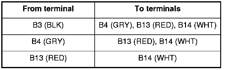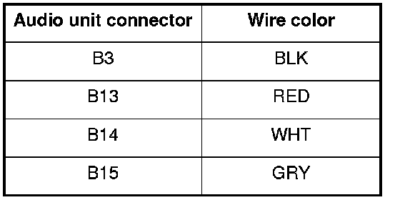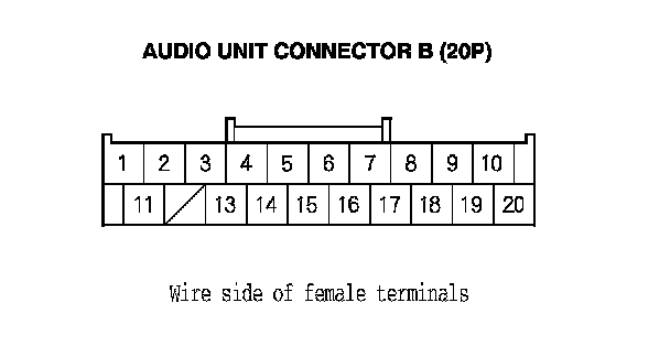 11. Check for continuity between audio unit connector B (20P) according to the table.