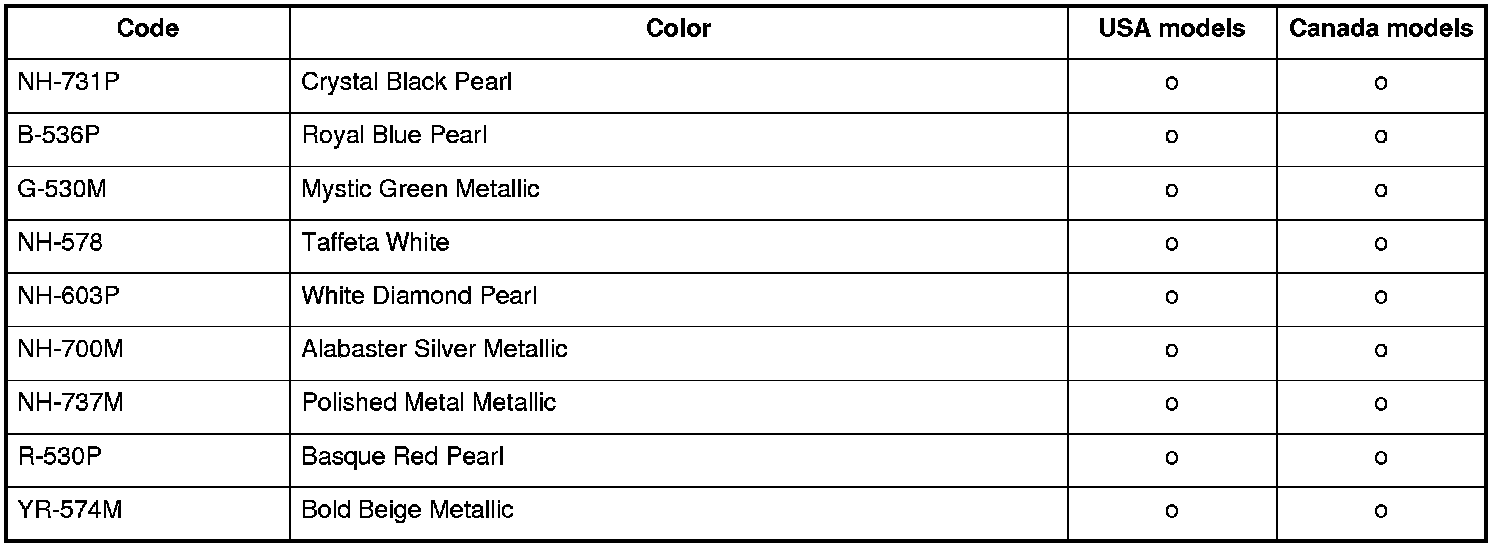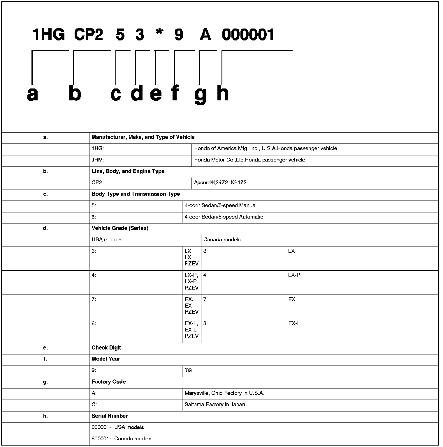 VIN, Engine and Transmission Numbers, and Paint Codes (4-Door)