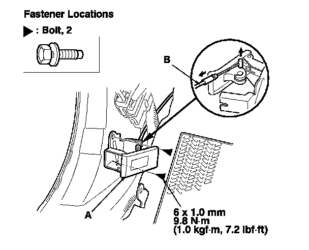 4. Install the hood release handle in the reverse order of removal, and note these items: