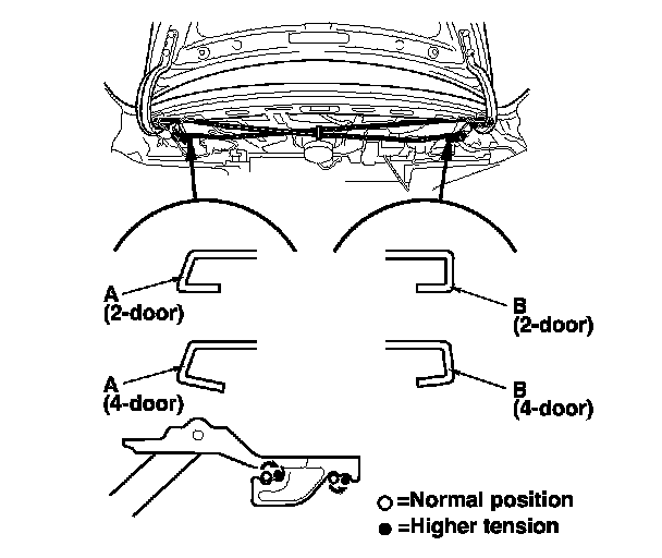 - The shapes of the right torsion bar (A) and the left torsion bar (B) are shown. Install the torsion bars properly.