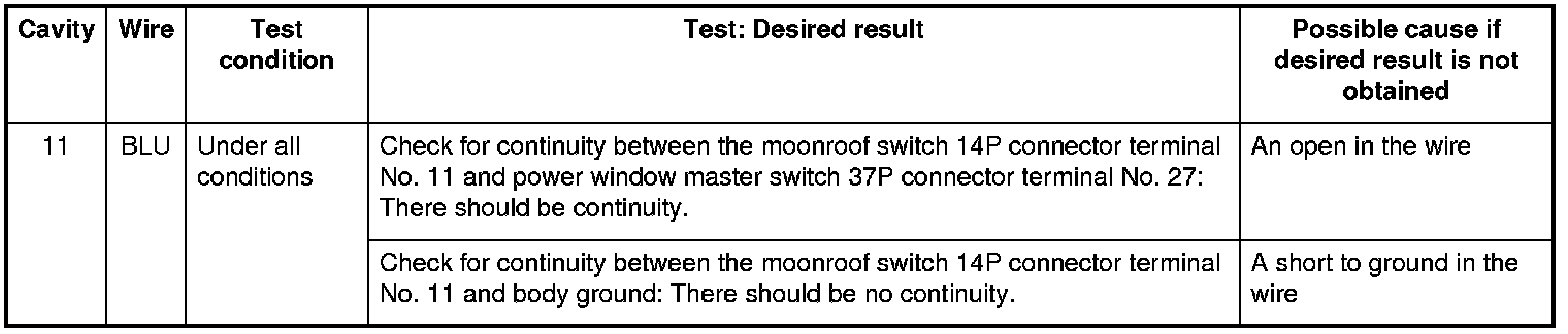 Moonroof Control Unit Input Test (With Moonroof)