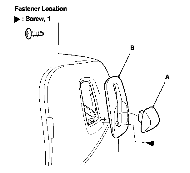 2. Driver's seat (10-way power seat): Remove the rear seat access knob (A). Remove the screw, then remove the rear seat access trim (B).