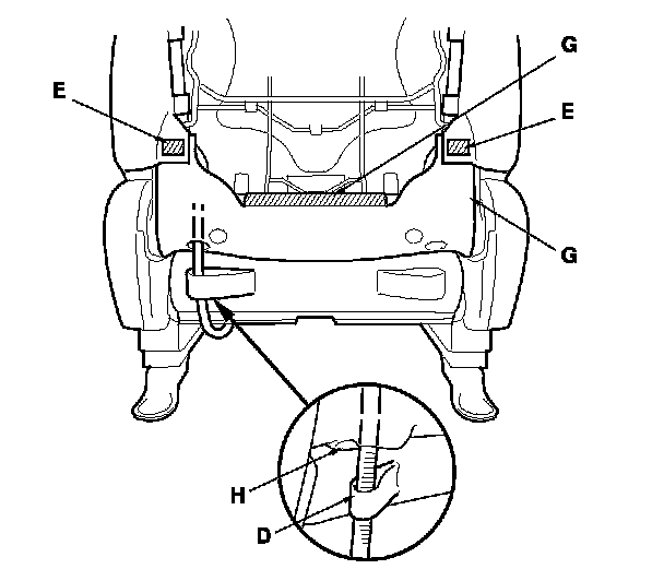 - Driver's seat (manual height adjustable seat)/ Passenger's seat: Side airbag connector (D)