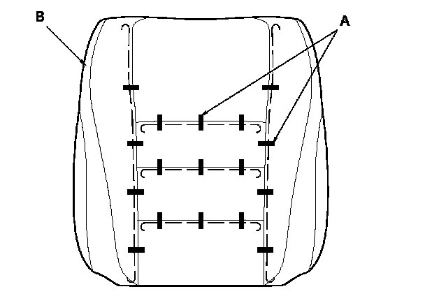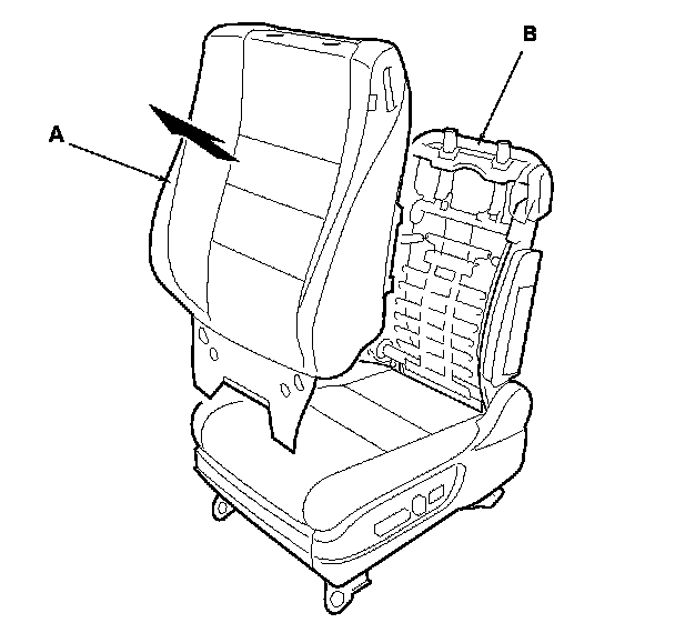 17. Remove the seat-back cover/pad (A) from the seat-back frame (B).