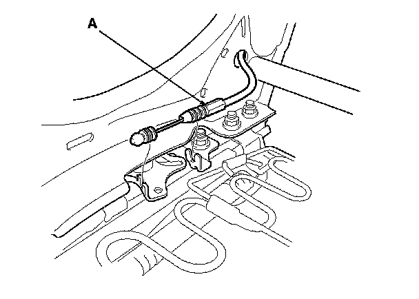 3. Note positions of the rear seat access cable (A), then remove the cable.