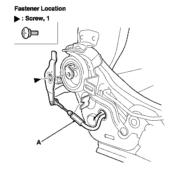 4. Remove the screw, then remove the rear seat access cable (A).